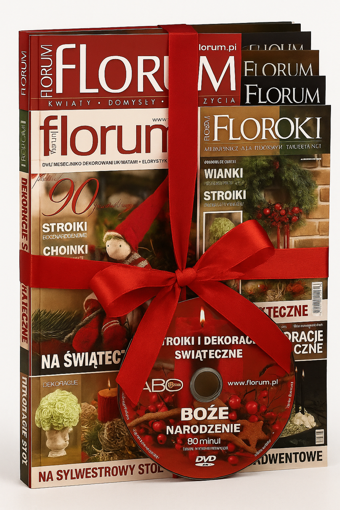 Ten wyjątkowy zestaw to idealny prezent dla osób, które kochają tworzyć piękne rzeczy – od dekoracji świątecznych, przez kompozycje florystyczne, aż po wyrafinowane aranżacje stołów i wnętrz. W komplecie znajduje się aż pięć wydań cenionego magazynu Florum, pełnego inspiracji, profesjonalnych porad oraz gotowych pomysłów na dekoracje. Dołączone jest także świąteczne DVD z instruktażami, które krok po kroku pokazuje, jak wykonać efektowne stroiki i ozdoby – idealne zarówno dla początkujących, jak i bardziej zaawansowanych twórców.