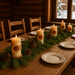 - Świeca umieszczona pośrodku stołu, otoczona gałązkami igliwia i szyszkami, tworzy przytulny, świąteczny nastrój. Jej naturalne zdobienia z suszonej pomarańczy i anyżu podkreślają tradycyjny klimat świąt.