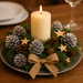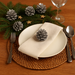 Zimowa dekoracja stołu – rozłóż szyszki luzem wokół talerzy zamiast konfetti.