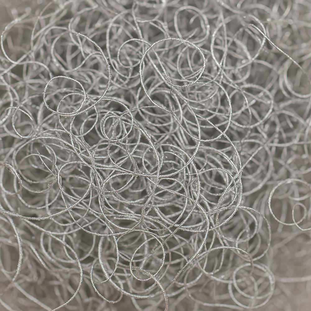 Delikatne, plastyczne włókna o metalicznym połysku.