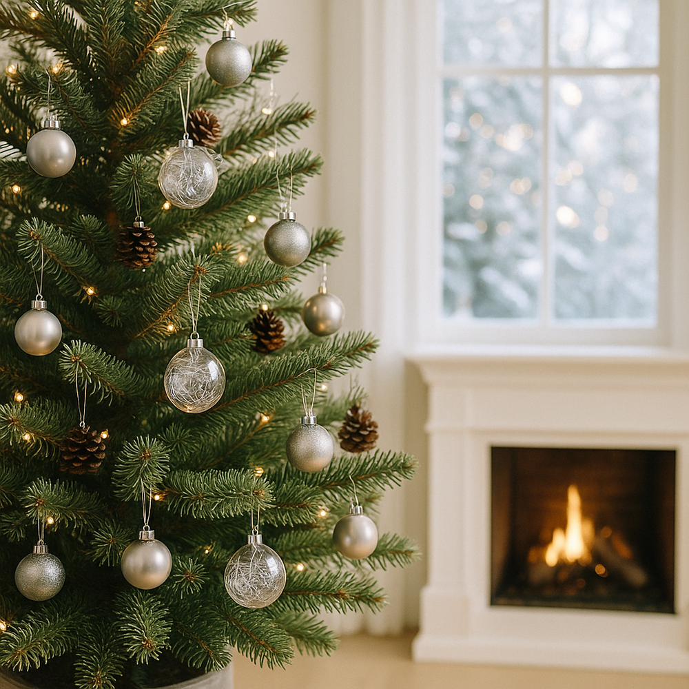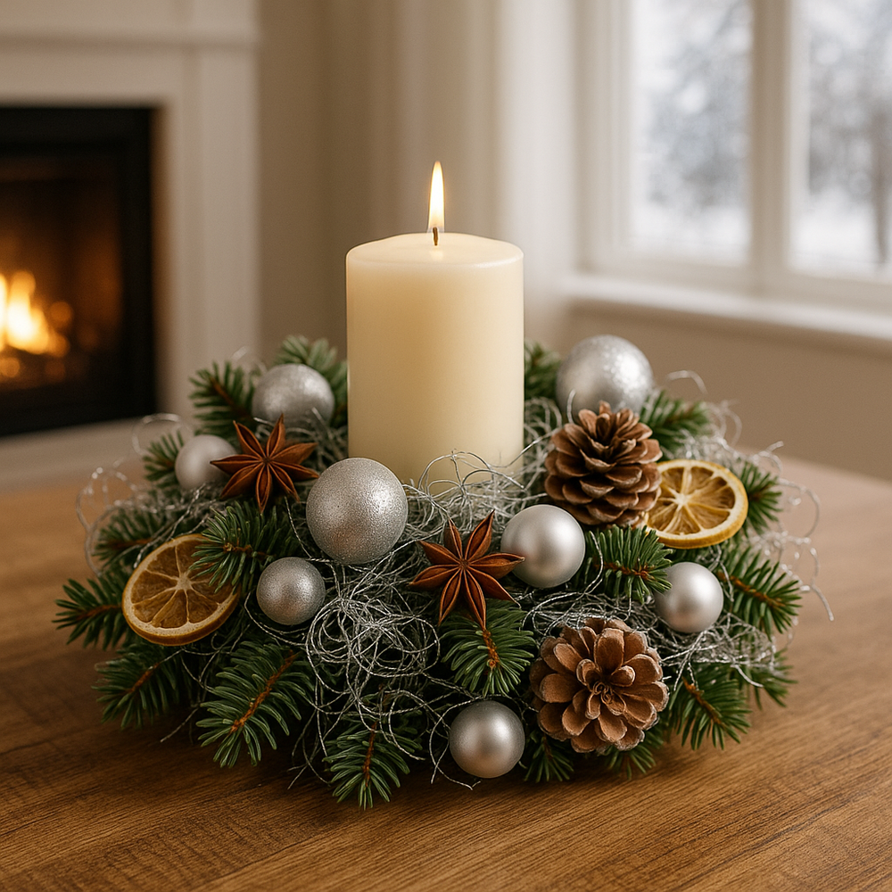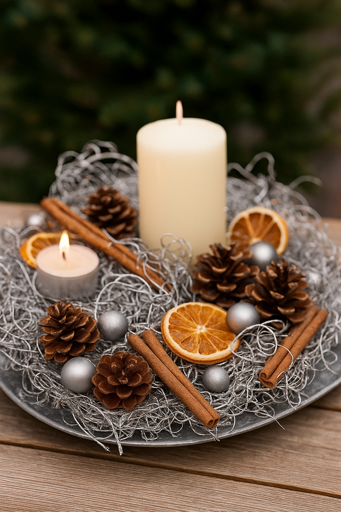 Srebrne, kręcone włókna tworzą efekt przestrzeni i światła, idealnie odbijając płomień świec i światełek choinkowych. Wyglądają jak delikatna pajęczyna mrozu – idealna na czas świąt i zimowych dekoracji wnętrz.