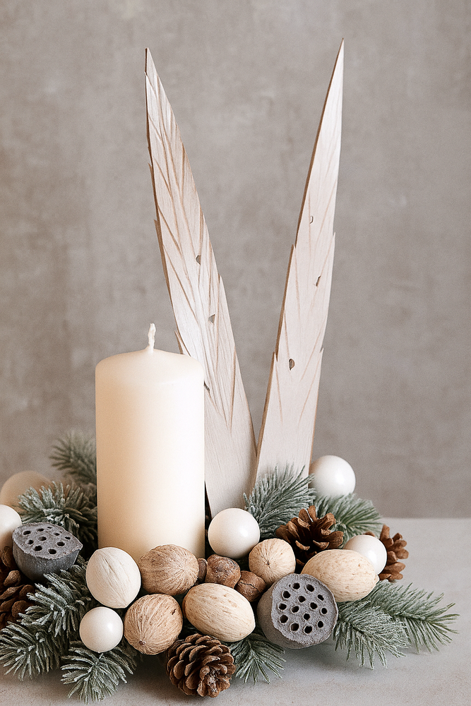 W zestawieniu z zielenią świerku i delikatnym złotem uzyskasz efekt luksusowej, naturalnej elegancji.