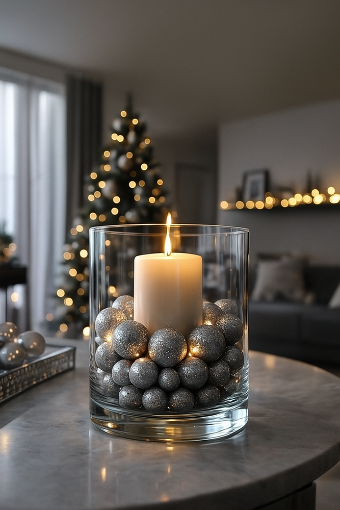 Dodaj światełka lub świece, aby stworzyć zimną, migoczącą dekorację.