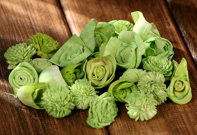 Suszone Kwiaty Sola – Dekoracyjne, Ręcznie Tworzone Kwiaty z Masą Maniokową, 60 szt./op, Jasnozielone