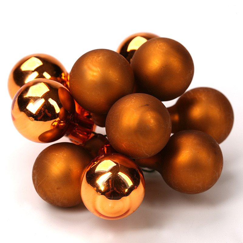 • Bombki szklane w kolorze starego złota o średnicy 15 mm na druciku. Doskonale nadają się do dekorowania stroików i kompozycji świątecznych.