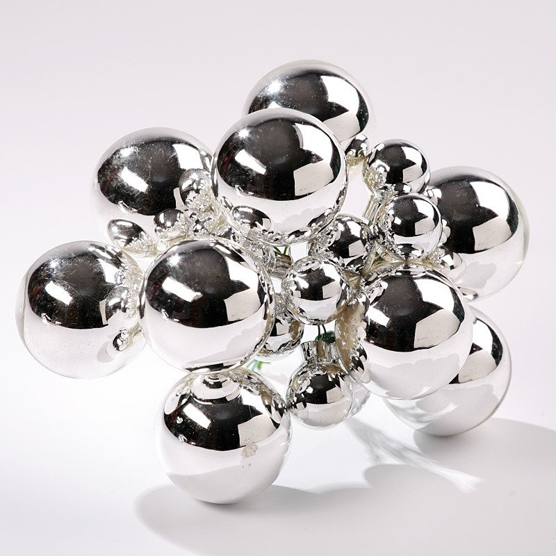 BOMBKI SZKLANE na druciku – srebrne, średnica 20 mm, 18 szt.