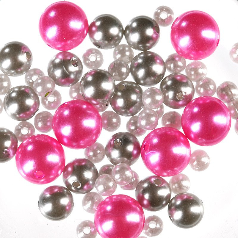 Dekoracje świąteczne – Perełki i koraliki dekoracyjne (50g, srebrno-biało-różowe)