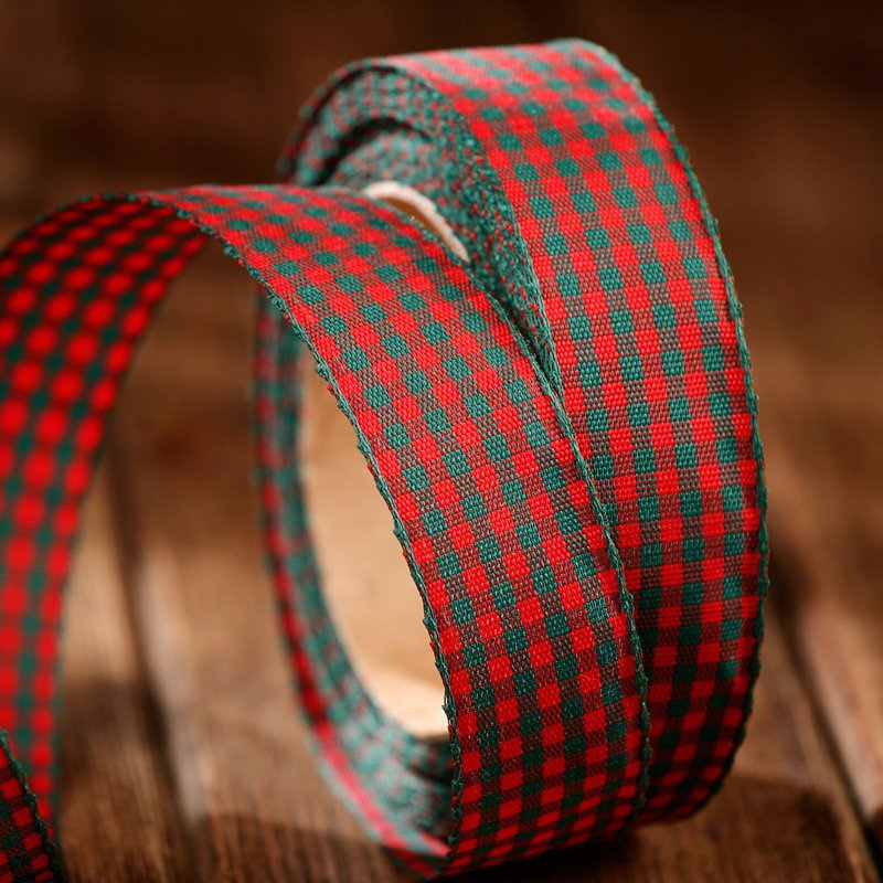 Wstążka świąteczna kratka 35mm / 350 cm – Klasyczna elegancja z nutą świątecznej tradycji