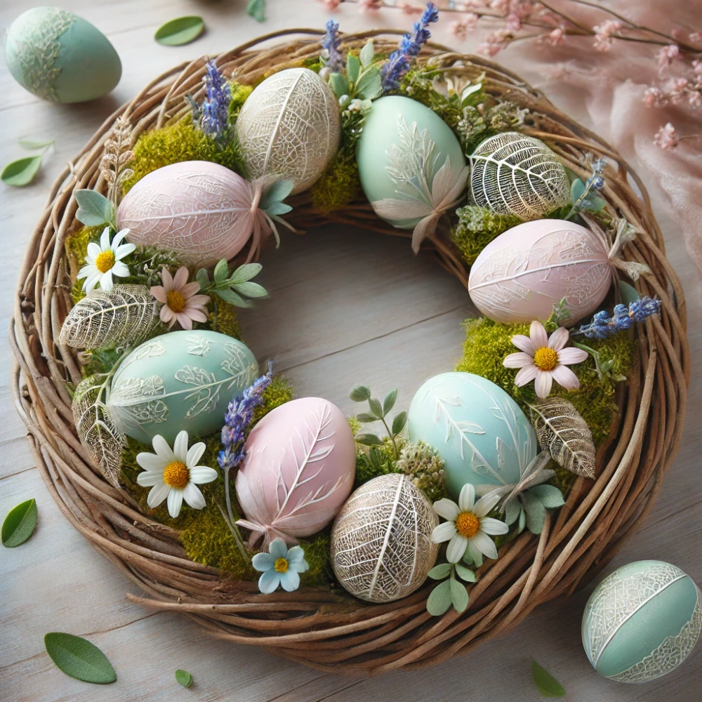 1. Dekoracyjne jajka z liśćmi szkieletowymi