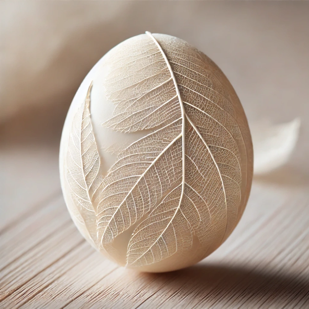 - Ostrożnie umieść listek szkieletowy na powierzchni jajka.