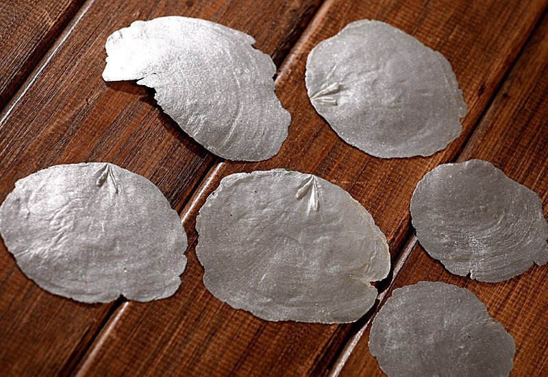 Srebrne Capiz dają efekt „szklanych bombek”.