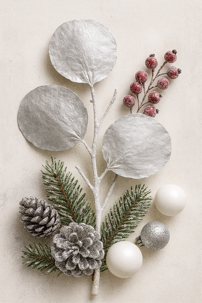 Dodaj sztuczny śnieg, brokat lub mikroledy – srebro ożywa.