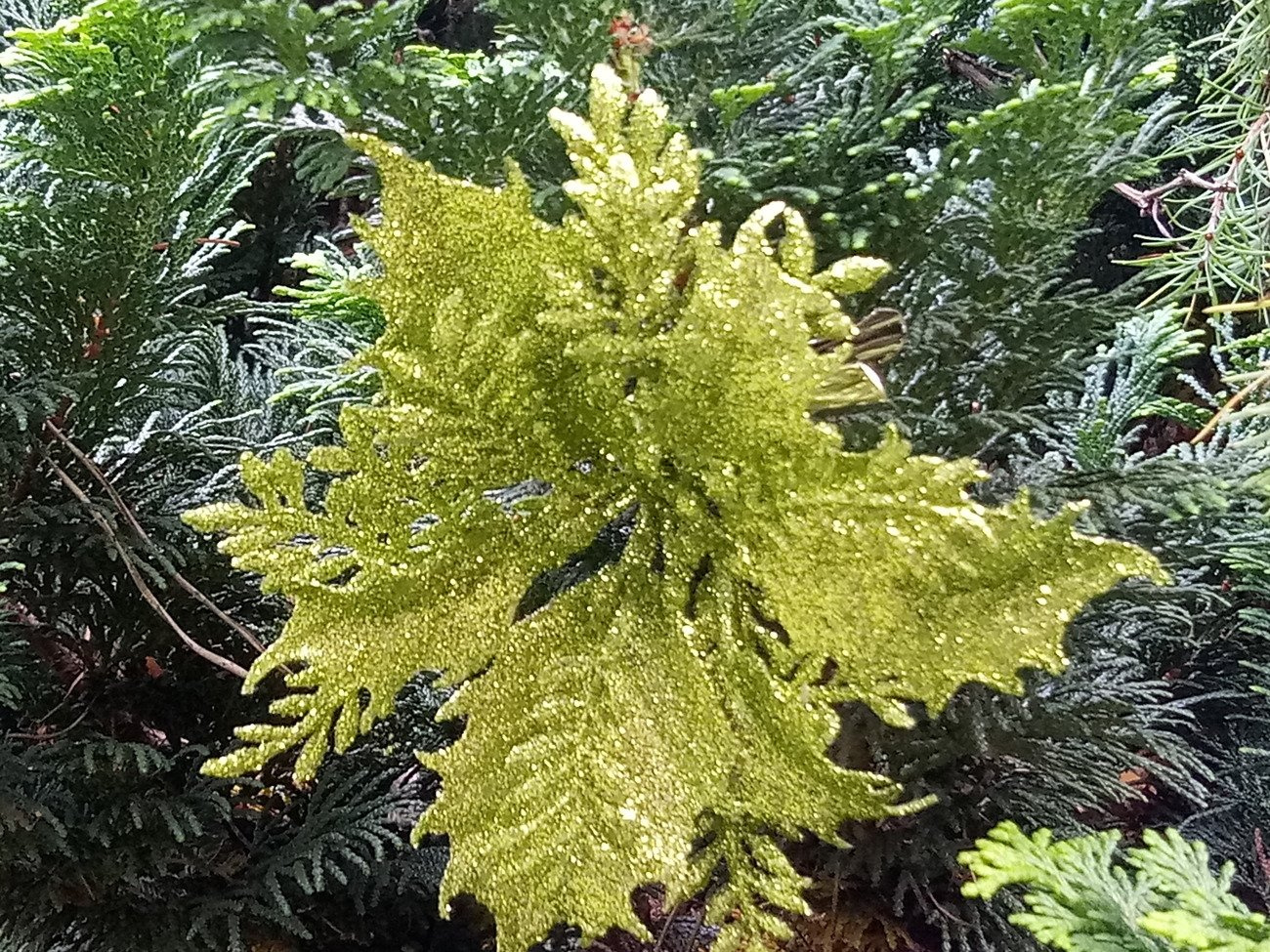 Gwiazda betlejemska  poinsecja brokatowana 14 cm na klamerce zielona