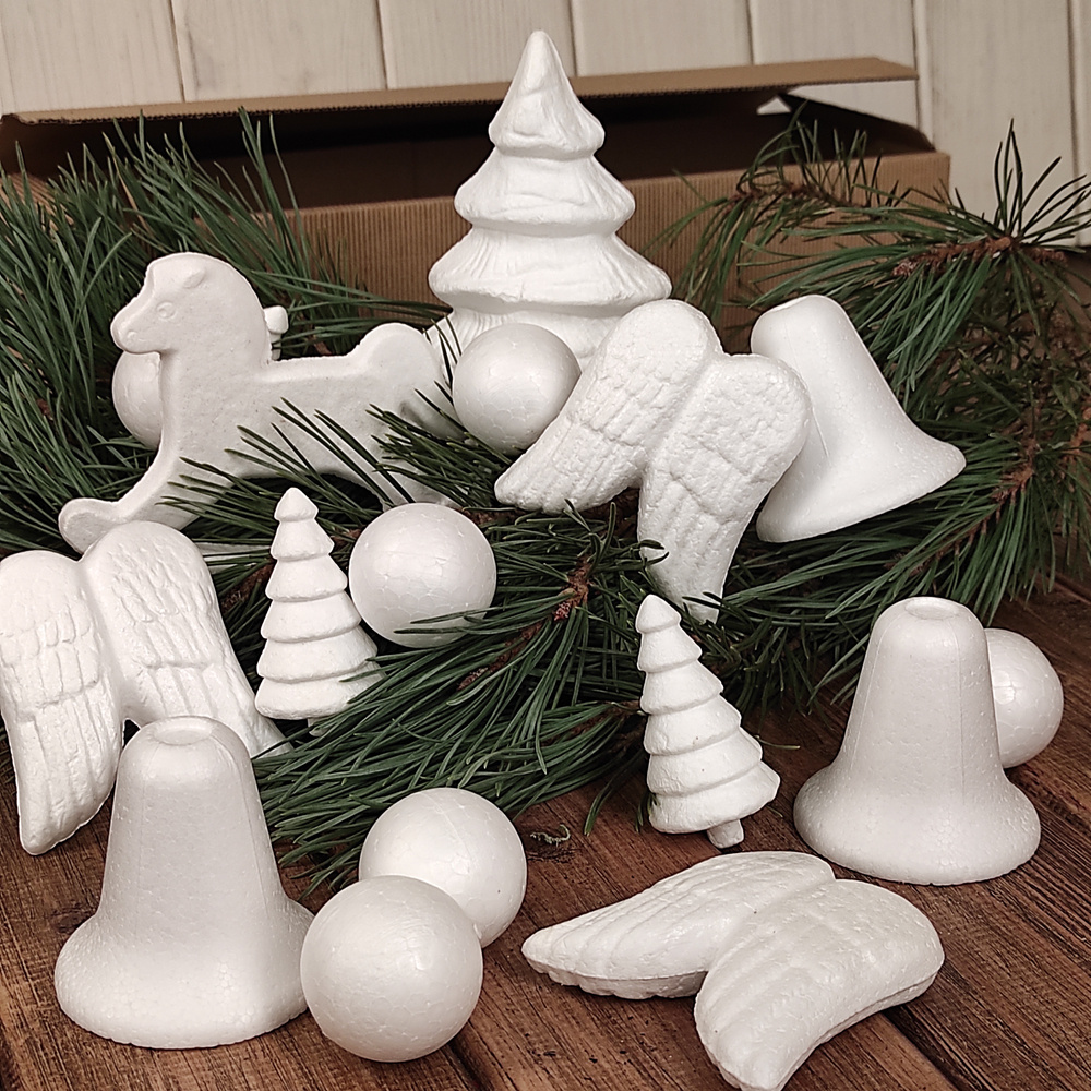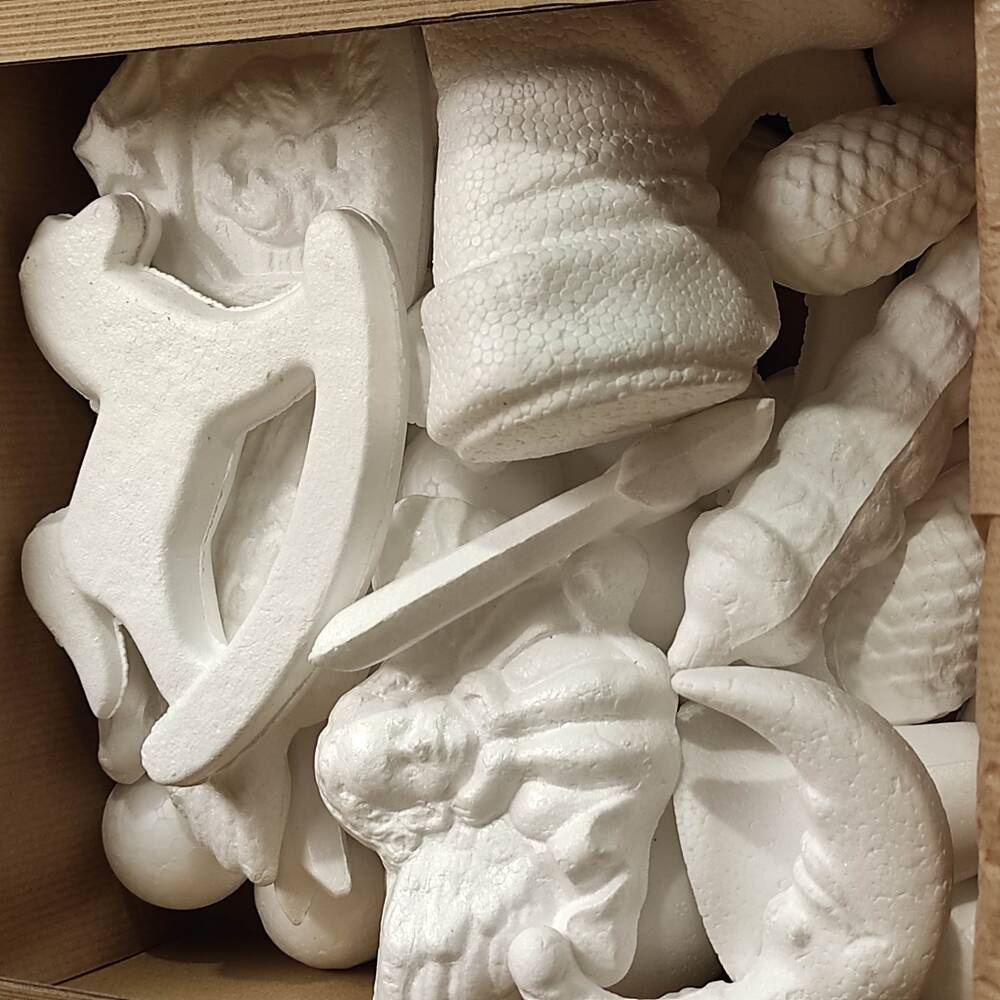 Opakowanie w formie dekoracyjnego kartonu sprawia, że zestaw styropianowych kształtek może być doskonałym pomysłem na prezent dla osób kreatywnych lub miłośników DIY.