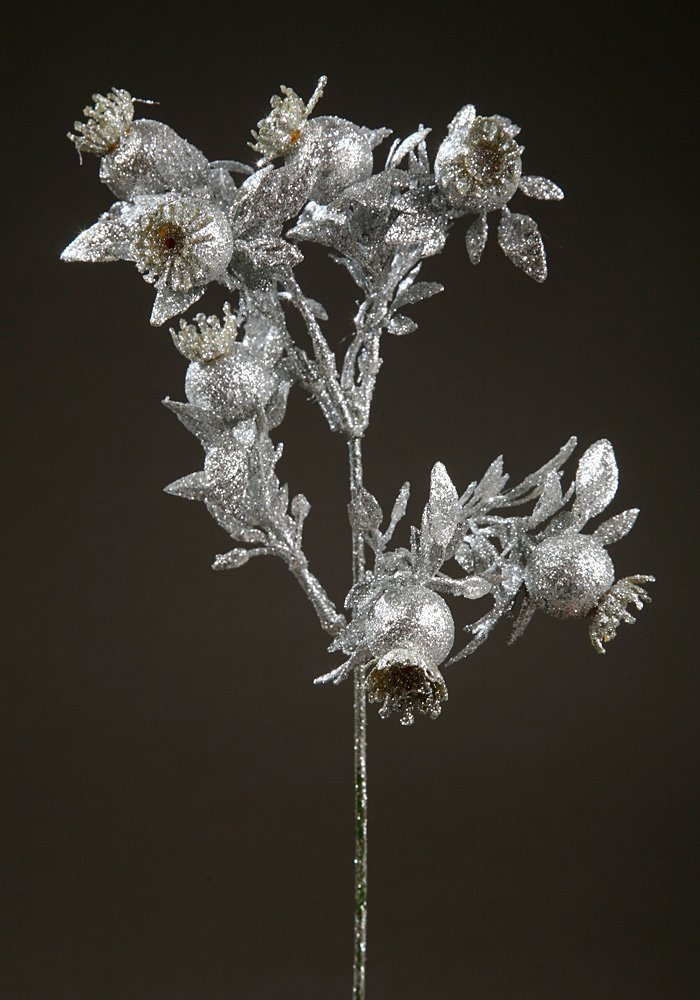 Świąteczne dekoracje DZIKA RÓŻA SREBRNA 30 cm – elegancki dodatek do bożonarodzeniowych aranżacji