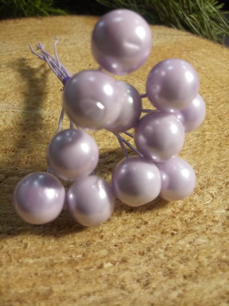 Ozdoba świąteczna – Perełki koraliki na druciku, wiązka lawendowych perełek 10mm/10 cm (12 szt.)