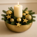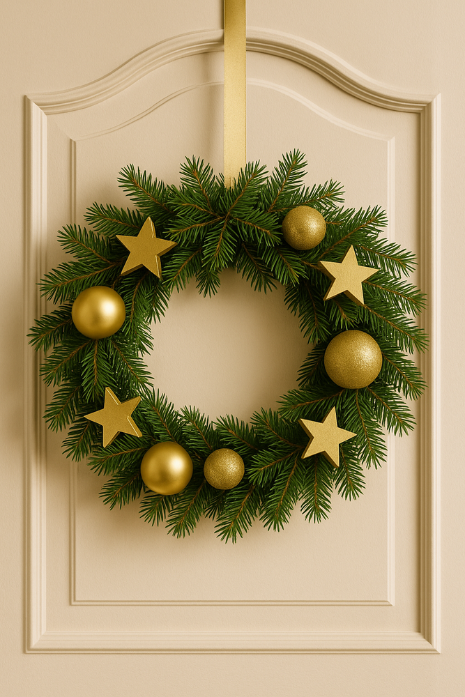 Złote gwiazdki GrandDeco to idealne połączenie elegancji i naturalnego uroku – doskonałe do tworzenia nastrojowych, świątecznych aranżacji w jasnym, przytulnym wnętrzu.