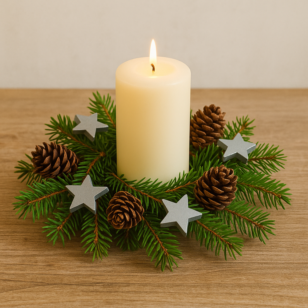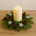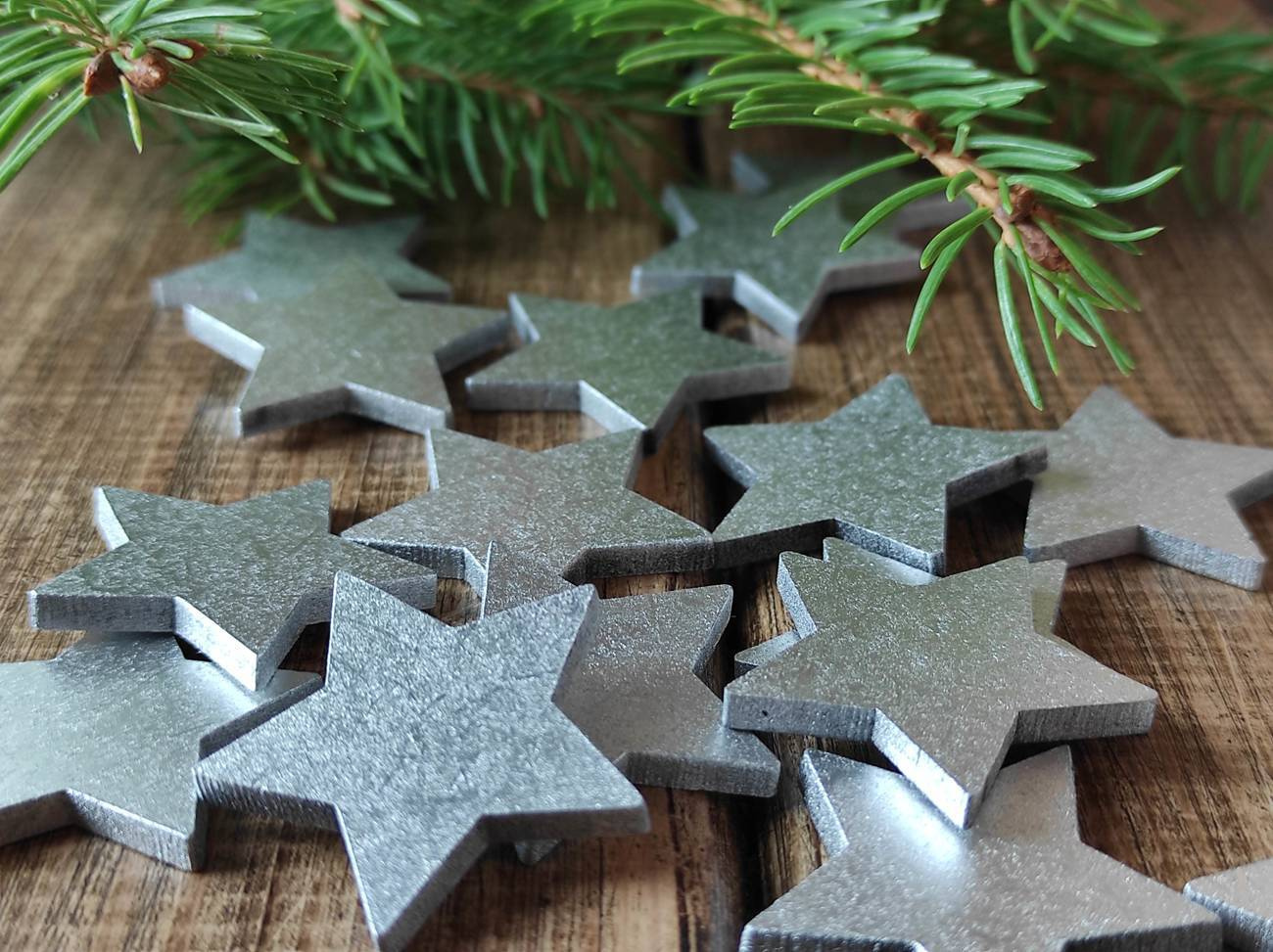 Połącz srebrne gwiazdki z białymi dodatkami, jutowym sznurkiem i zielenią świerku, aby stworzyć harmonijną, ciepłą dekorację pełną świątecznego nastroju.