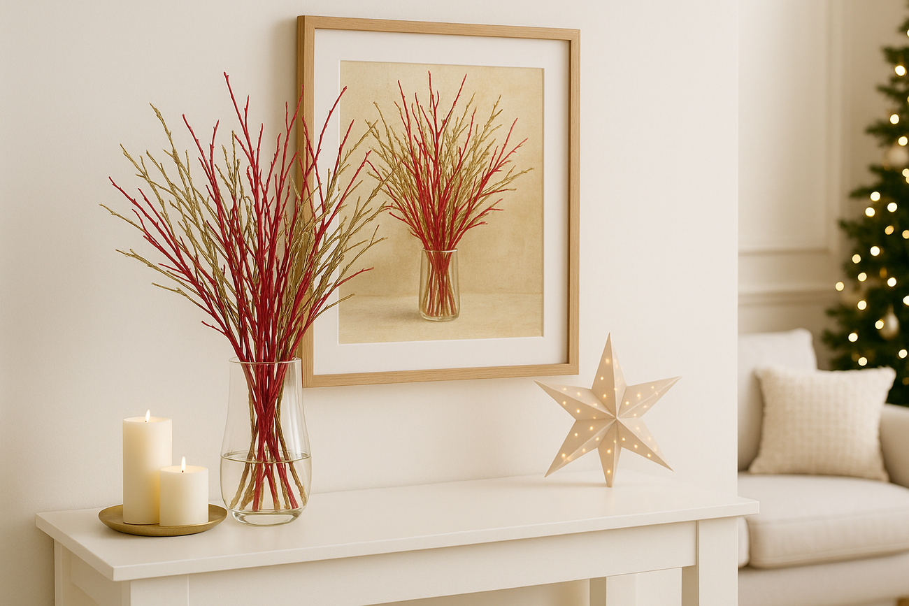 Czerwono-złote gałązki dekoracyjne 30–40 cm – efektowny, świąteczny akcent