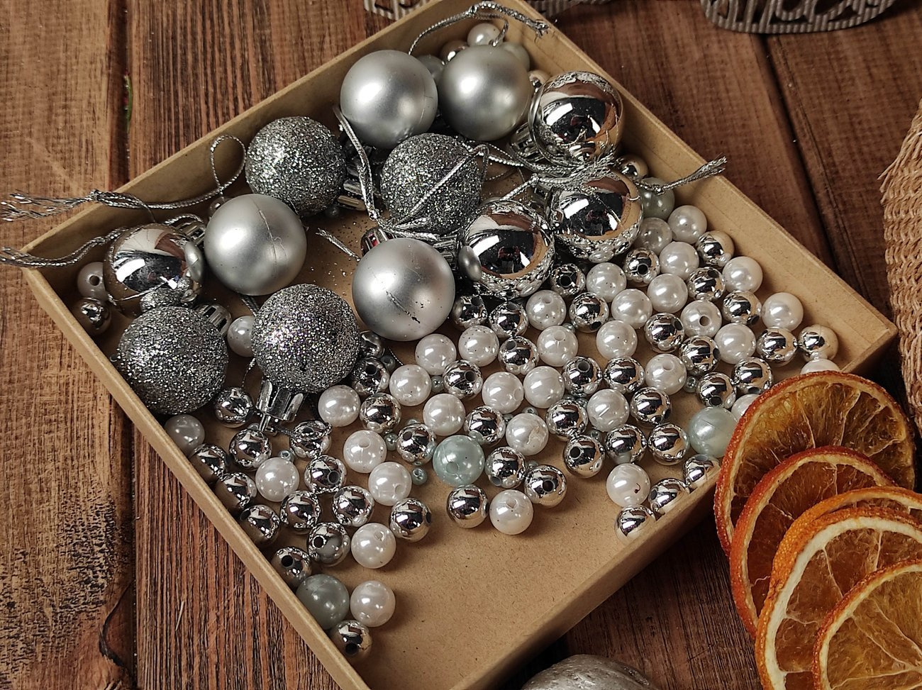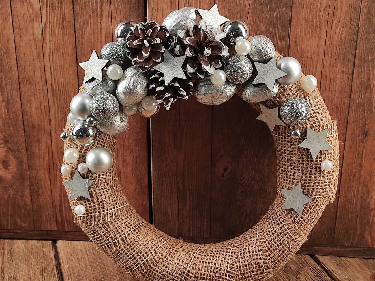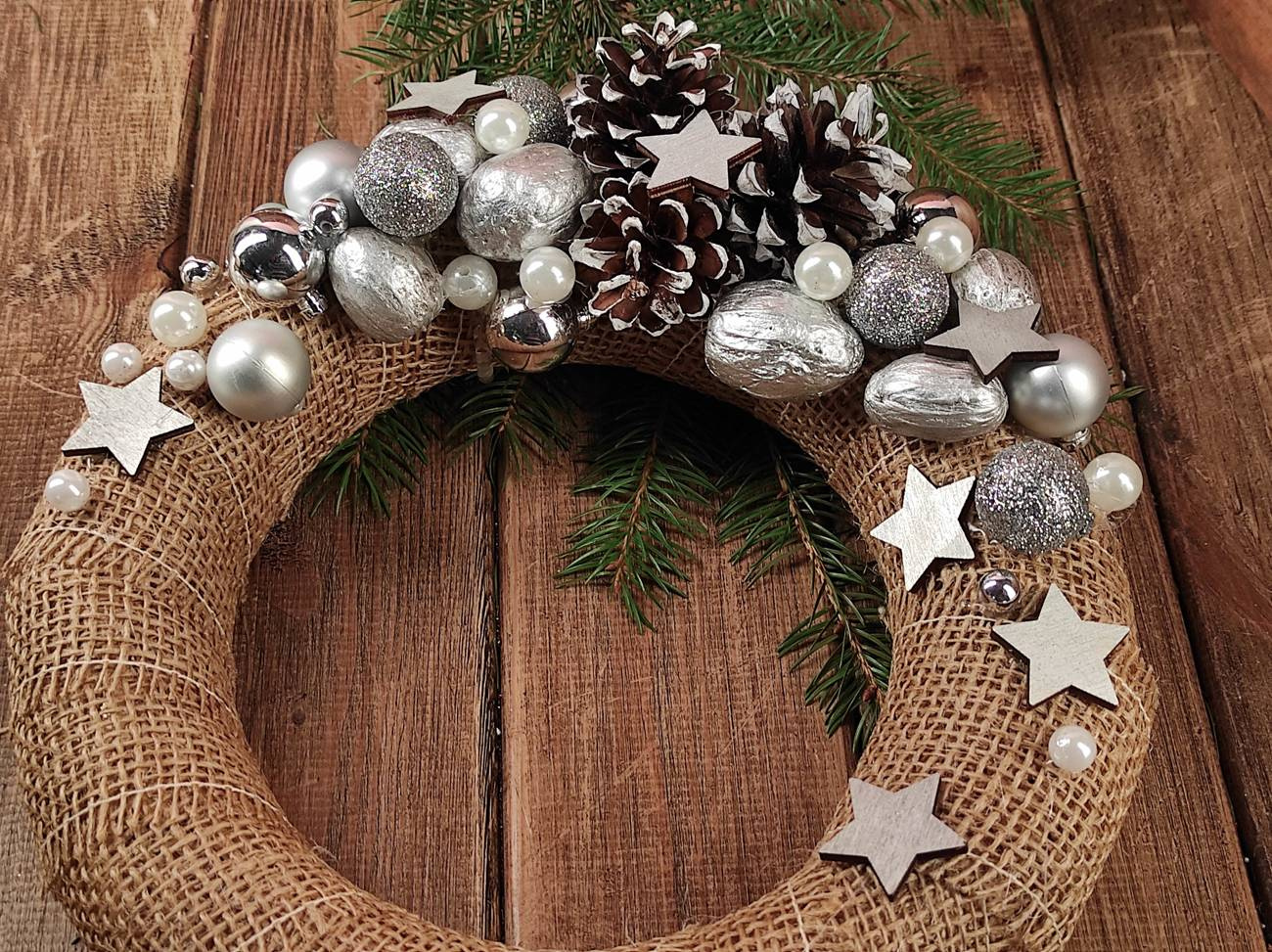BOŻE NARODZENIE PREZENT DIY wianek stroik świeczka do samodzielnego ułożenia SREBRNY