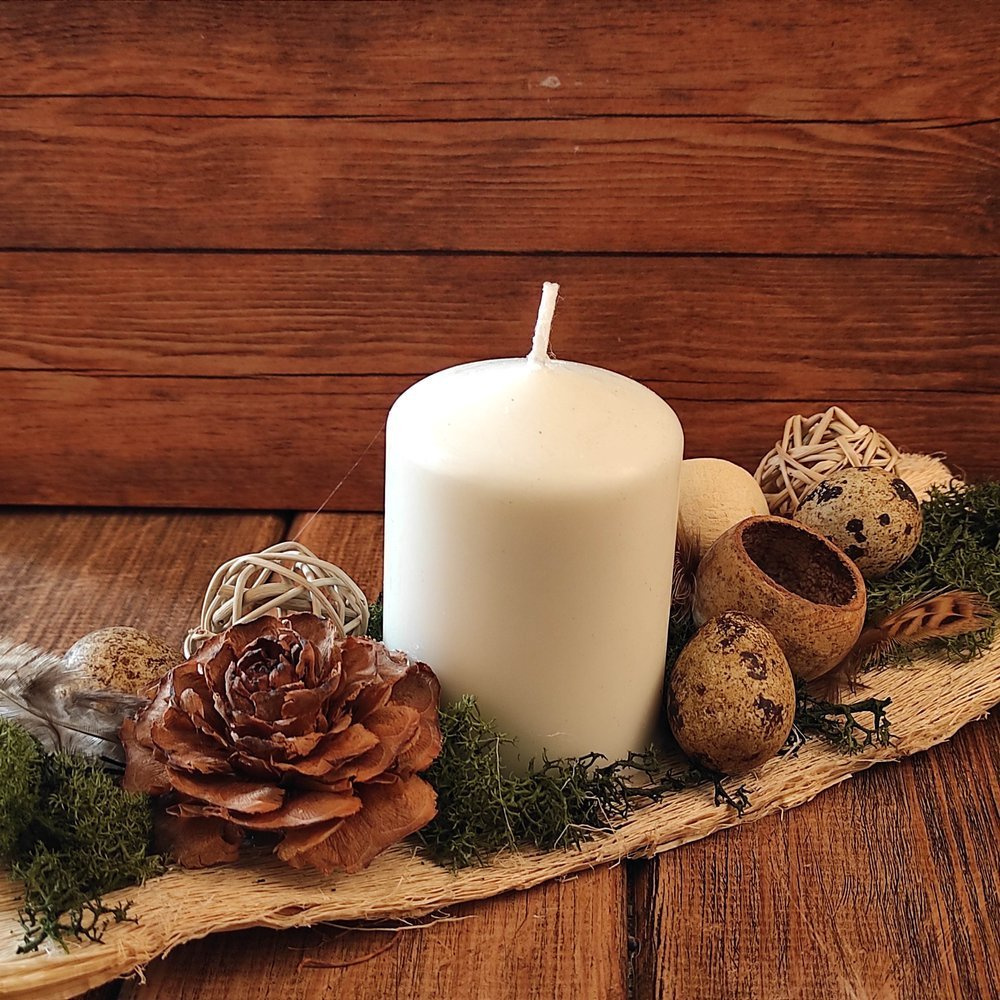 Wiosenna aranżacja na korze papai to nie tylko ozdoba wielkanocna, ale także wyjątkowe dzieło sztuki, które łączy w sobie naturalność, elegancję i funkcjonalność. Zainstaluj ją jako centralny punkt świątecznej oprawy, ciesz się przyjemnym światłem świecy i oddaj się atmosferze ręcznie wykonanej magii, tworzącej wyjątkowy nastrój podczas świąt.