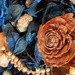 Dekoracyjne Dodatki: Dodatkowe ozdoby, takie jak suszone łuski, nadają kompozycji finezji i elegancji, tworząc spójną tonację brązowo-niebieską.