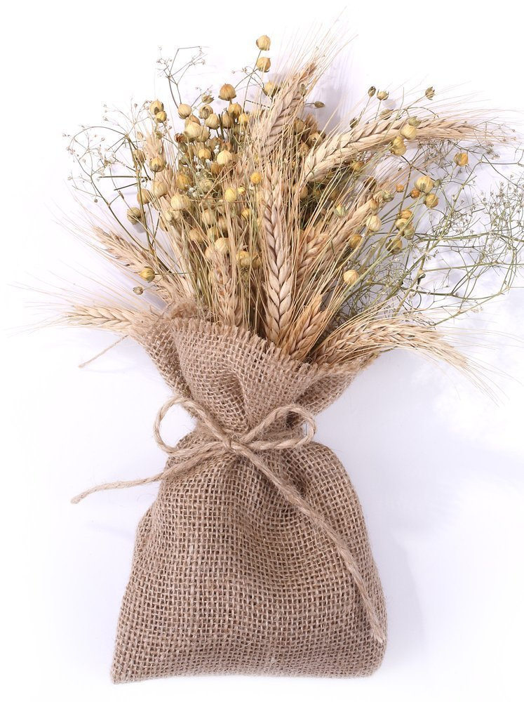 Estetyczna Wartość: Bukiet zboża suszonego w woreczku jutowym to nie tylko funkcjonalna dekoracja, ale także element, który dodaje elegancji i wdzięku każdemu wnętrzu. Jego piękny wygląd i harmonijne połączenie kolorów sprawiają, że stanowi atrakcyjny punkt centralny w pomieszczeniu.
