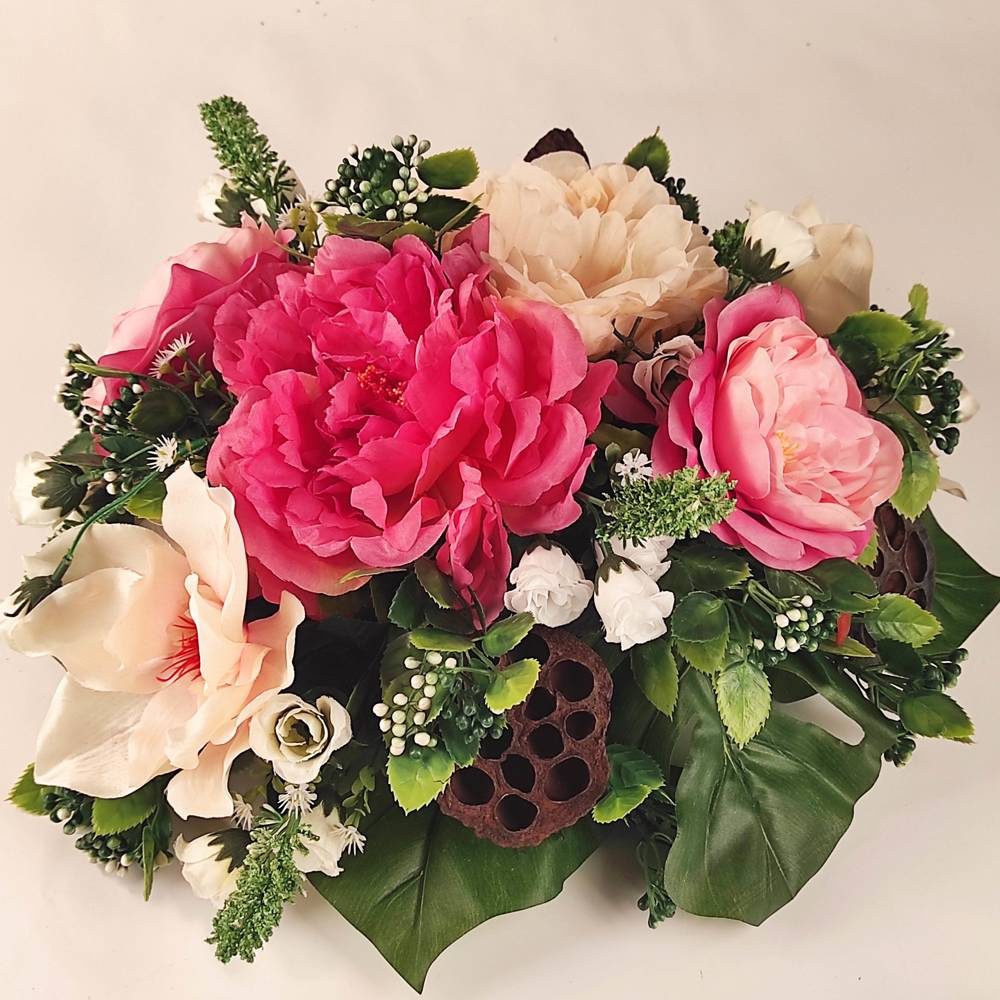 Stroik na cmentarz sztuczne kwiaty różowe 35-40 cm