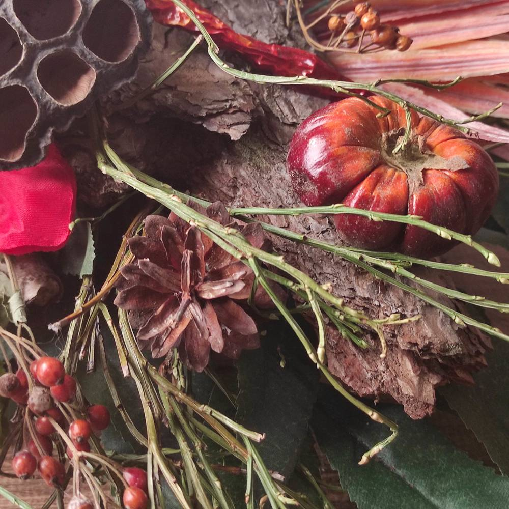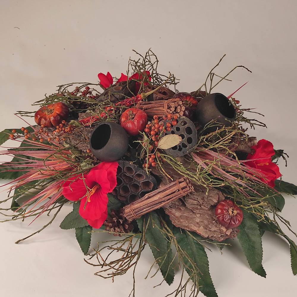 • Stroik nagrobny, kompozycja na cmentarz. Sztuczne kwiaty i liście, susz roślinny. Stroik na cmentarz.