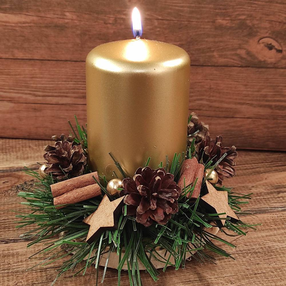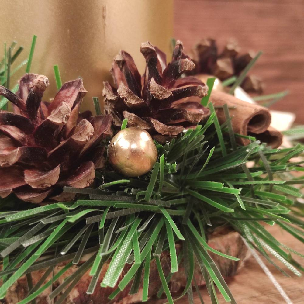 Wykwintne Materiały: Stroik zawiera starannie dobrany zestaw ozdób, takich jak suszone szyszki, cynamon, perełki złote oraz naturalne drewniane gwiazdki, które nadają mu wyjątkowego blasku i elegancji.
