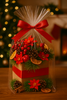• Wyjątkowy świąteczny stroik prezentowy o średnicy 25 cm, stworzony w ciepłej, klasycznej kolorystyce Bożego Narodzenia. Całość jest umieszczona w estetycznym kartonowym pudełku w odcieniu naturalnego kraftu