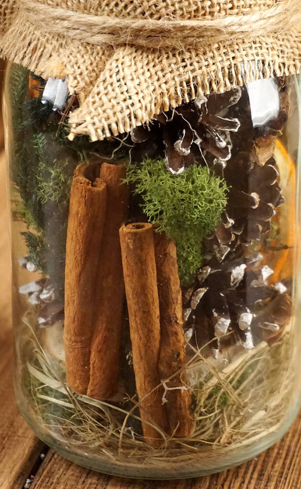 Każdy z elementów zestawu można wykorzystać na różne sposoby. Szklany słój o pojemności 1 litra można wypełnić wybranymi ozdobami i postawić jako centralną dekorację na stole
