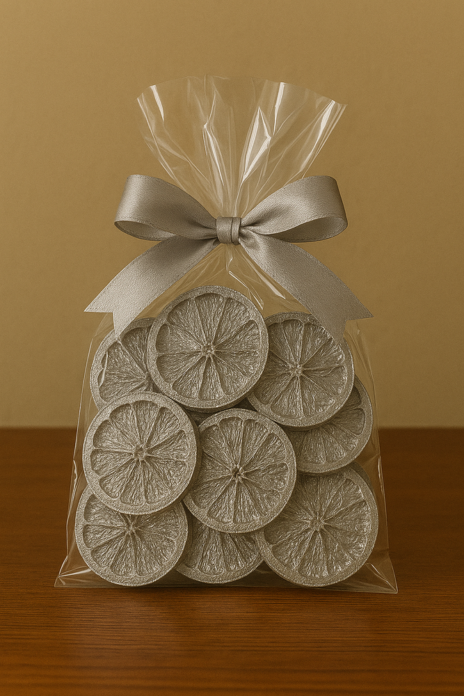 Srebrne suszone pomarańcze świetnie sprawdzą się jako ozdoby na choinkę. Ich metaliczne wykończenie wprowadza nutę elegancji, a jednocześnie pozostaje w zgodzie z naturalnym materiałem, jakim jest suszony owoc. Można je zawiesić za pomocą sznurka jutowego, wstążki satynowej lub metalicznej nici, tworząc piękne, minimalistyczne ozdoby, które doskonale będą wyglądać w stylu skandynawskim, eko lub glamour.