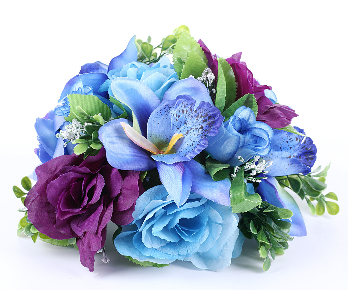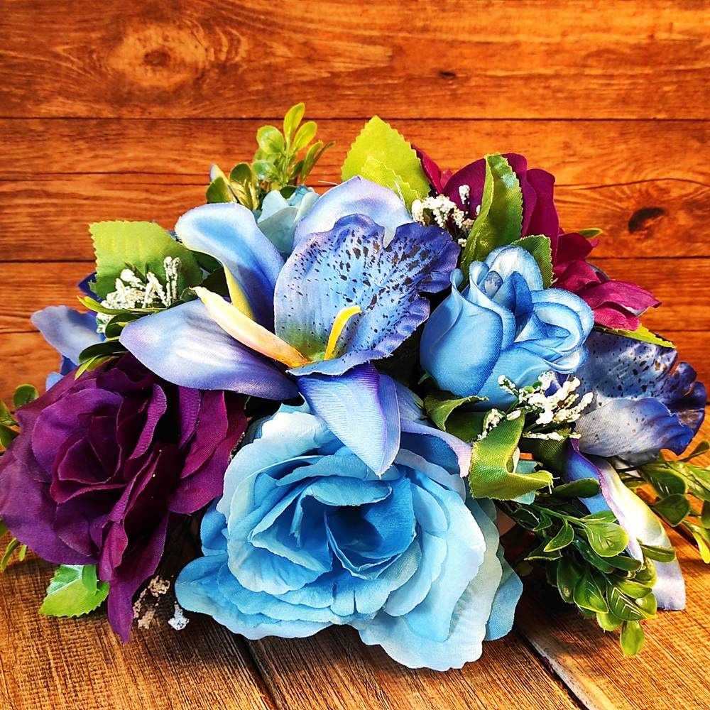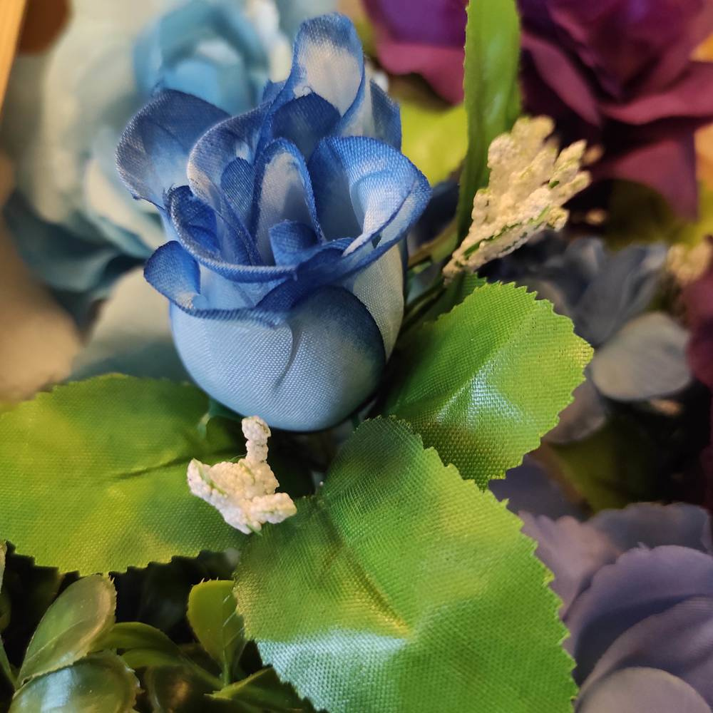 róża główka zamknięta niebieska w bukieciku liści -3