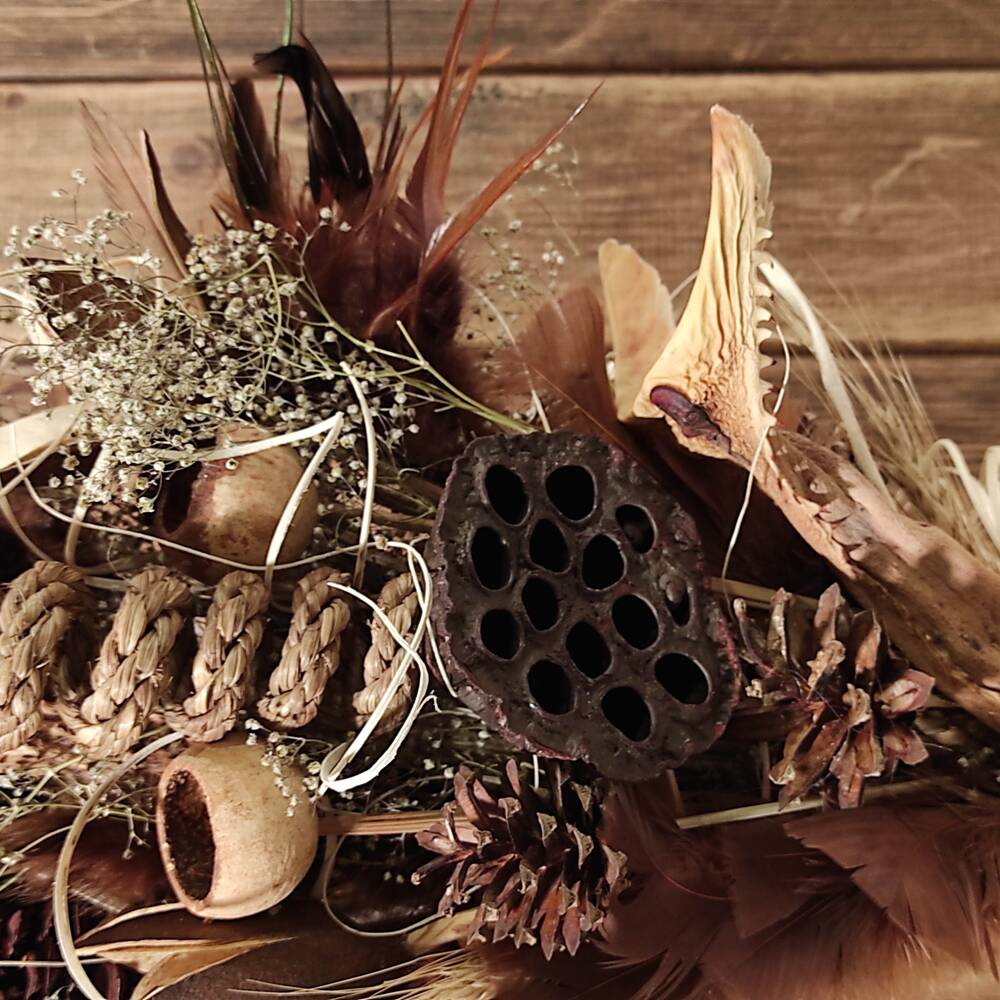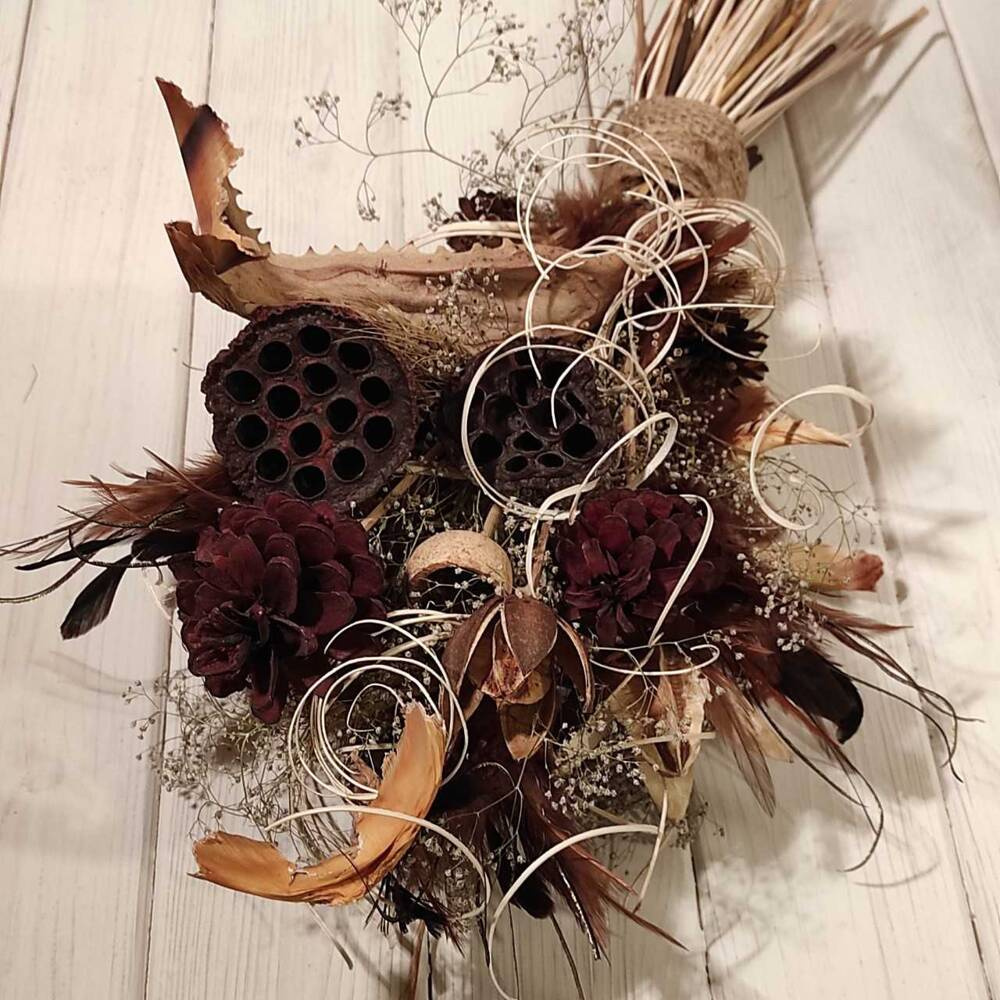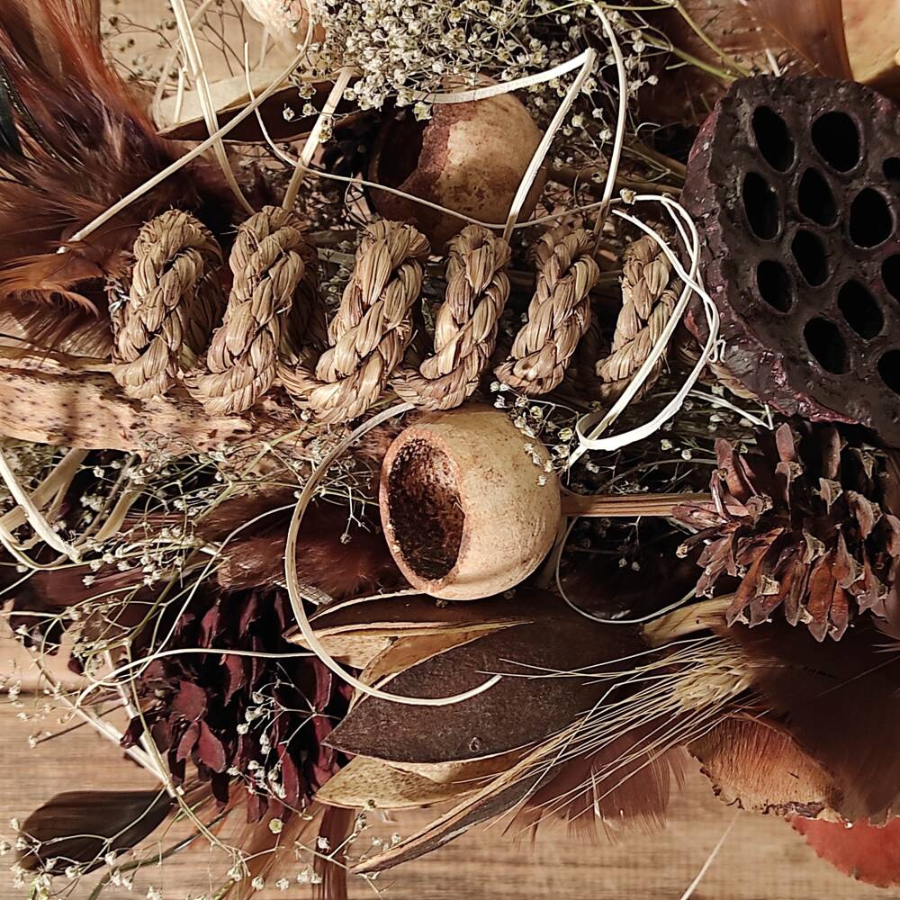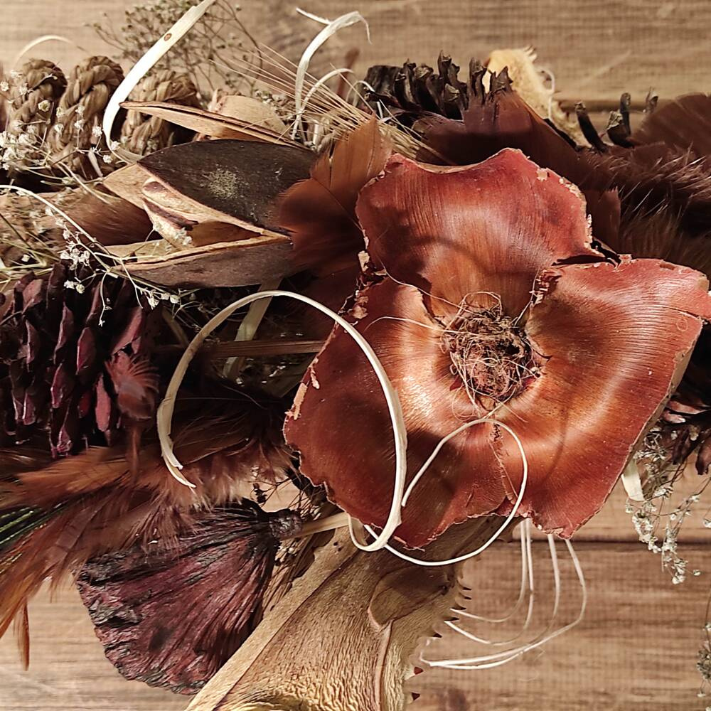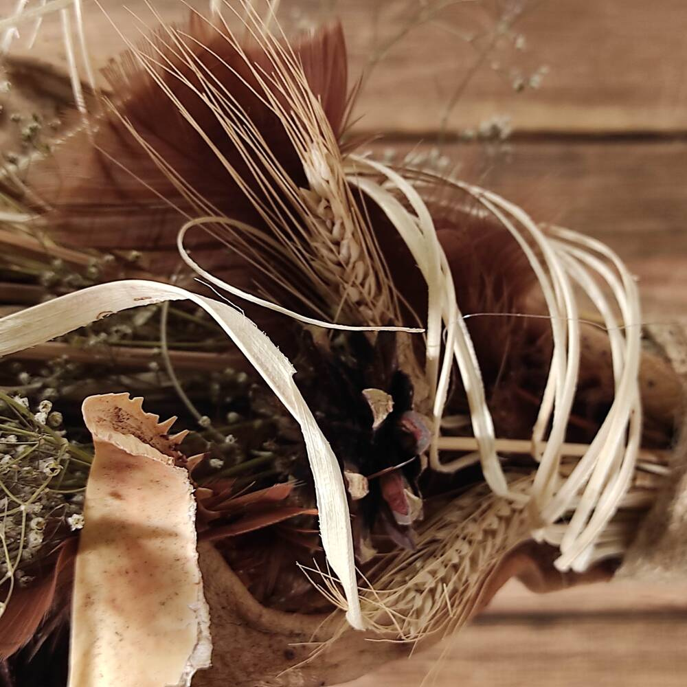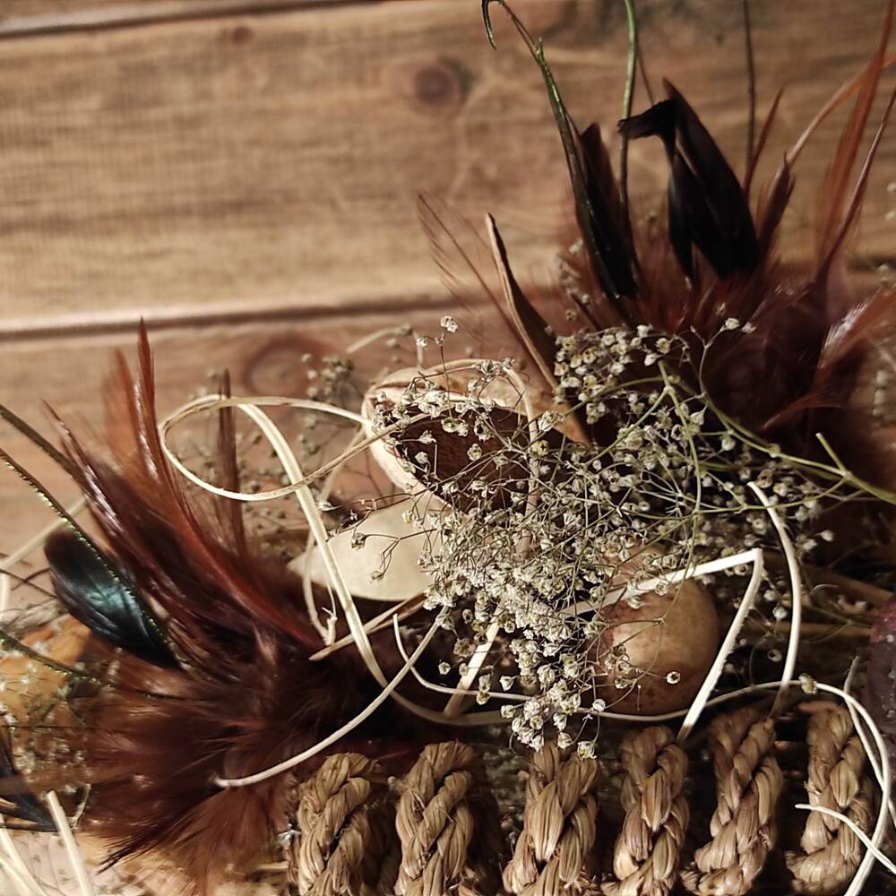 rośliny krajowe i egzotyczne łączą się w harmonijną, stylową kompozycję. Idealna naturalna ozdoba do wnętrz, pasująca do salonu, jadalni, gabinetu czy przestrzeni w stylu boho, rustykalnym i nowoczesnym.