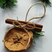 Cynamon: Laska cynamonu jest nie tylko dekoracyjnym dodatkiem, ale także elementem wprowadzającym do świątecznych dekoracji przyjemny, korzenny zapach, który natychmiast kojarzy się z ciepłem domowego ogniska. Cynamon dodaje naturalności i prostoty, jednocześnie nadając zawieszce eleganckiego wykończenia. Jego aromat wypełnia wnętrze, wzmacniając świąteczny nastrój.