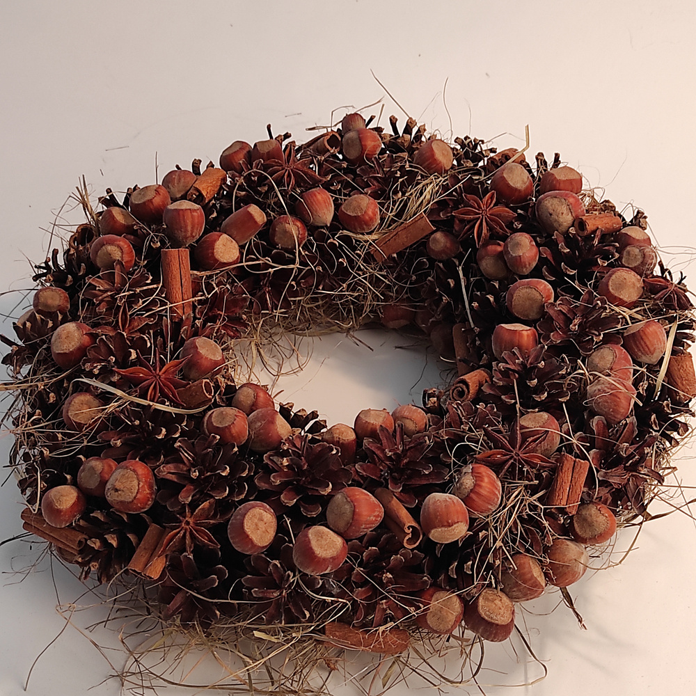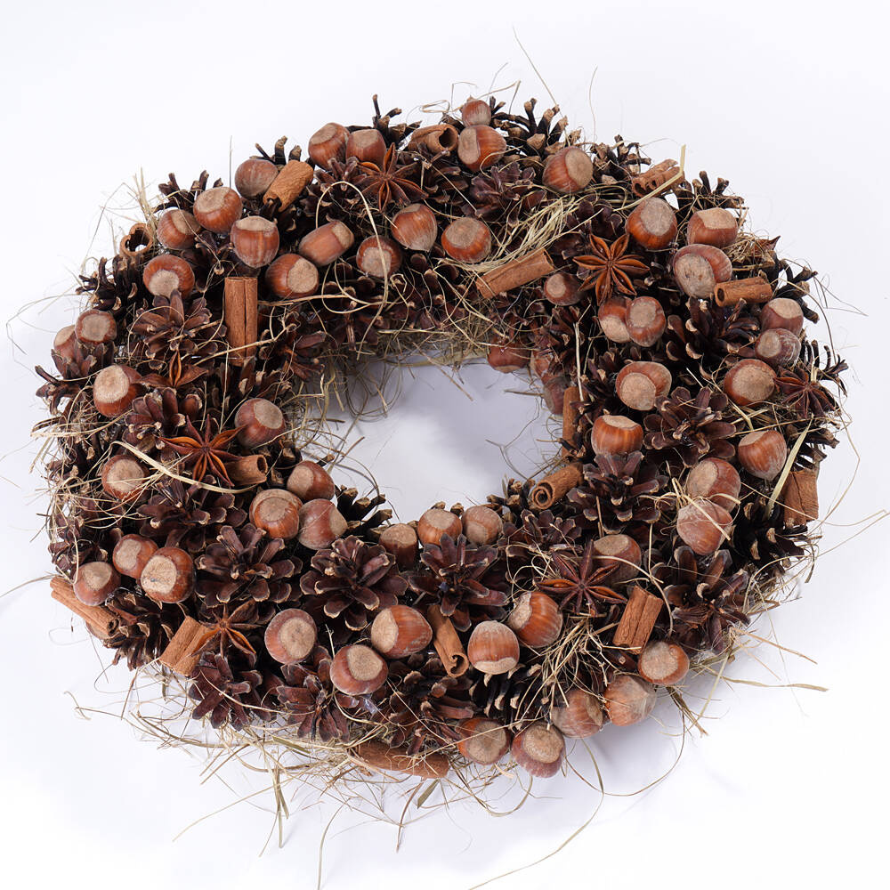 Wianek Świąteczny z Szyszek, Orzechów, Cynamonu i Anyżu – 30 cm
