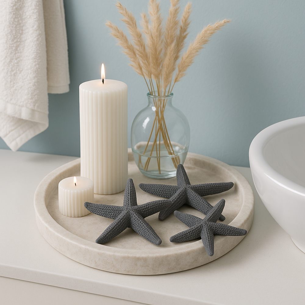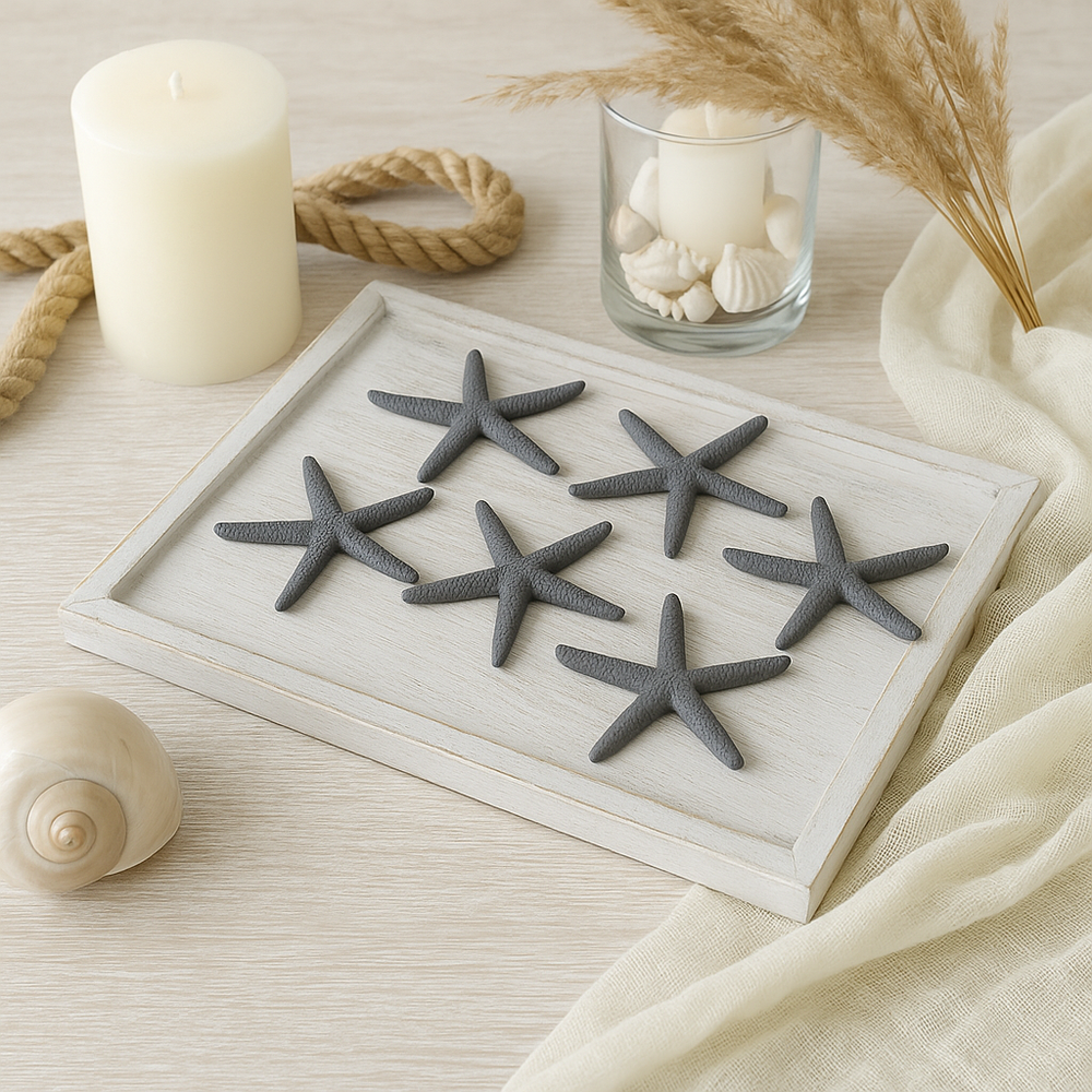 grafitowe rozgwiazdy dekoracyjne to ponadczasowy dodatek inspirowany morzem i naturą. Subtelny, głęboki odcień grafitu dodaje elegancji, dzięki czemu rozgwiazdy świetnie komponują się z różnymi stylami – od boho, przez minimalizm, aż po nowoczesny glamour.