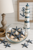 Całoroczne dekoracje wnętrz – ułóż je na drewnianej tacy z muszlami i świecami na komodzie lub stoliku kawowym.