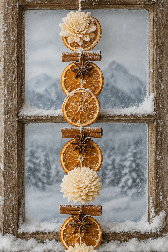 Materiały: suszone pomarańcze, laski cynamonu, anyż gwiazdowy, kwiaty shola, sznurek jutowy