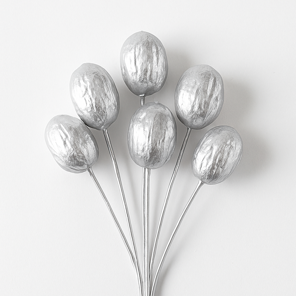 Dla naturalnego efektu połącz srebrne orzechy z gałązkami eukaliptusa, szyszkami lub drewnianymi elementami.