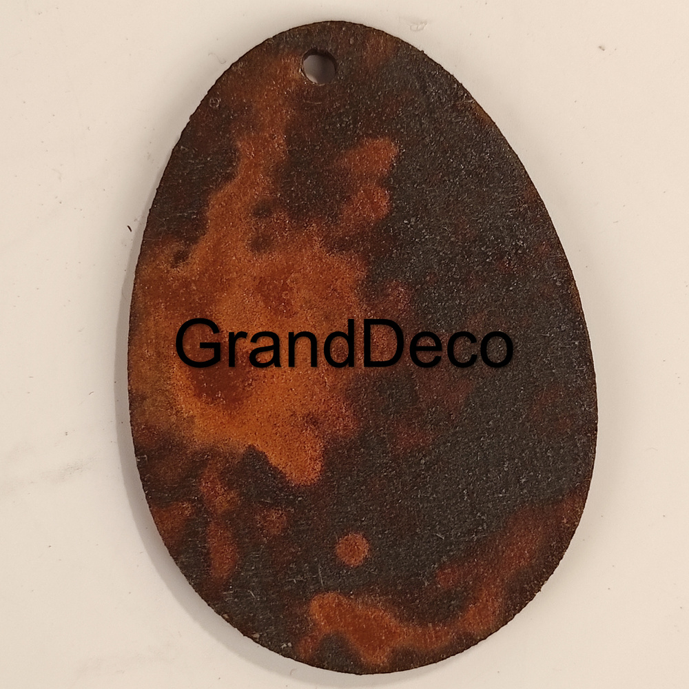 Jajka wielkanocne rdzewione – zawieszki jajka wielkanocne w rozmiarze 80 mm, 4 sztuki, to doskonała ozdoba wielkanocna, która idealnie wpisuje się w różne style dekoracyjne. Drewniane jajka pokryte imitacją rdzy to naturalne dekoracje drewniane na Wielkanoc, które wprowadzą wyjątkowy, rustykalny klimat do Twojego wnętrza.