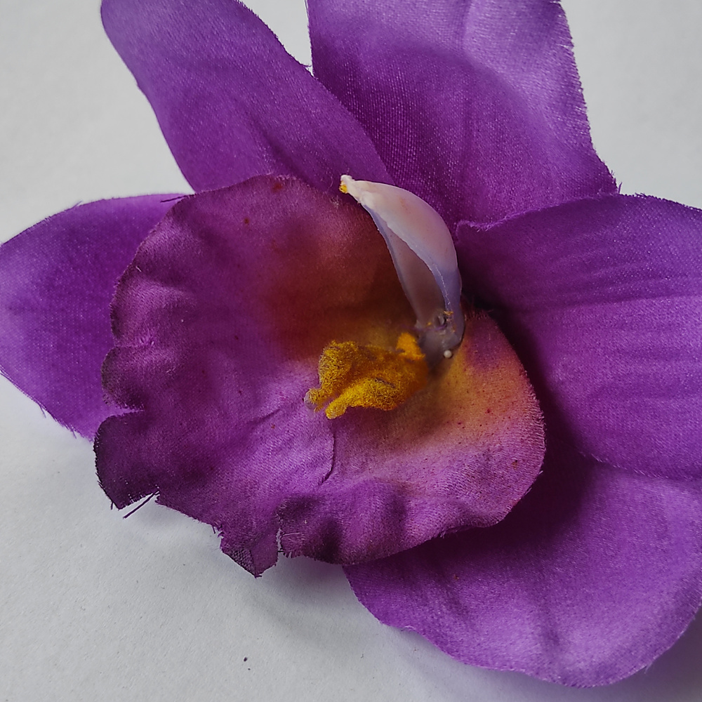 Zestaw 4 sztuk sztucznych główek storczyków w głębokim odcieniu ciemnego fioletu o średnicy 12 cm. Kolor inspirowany ametystem i śliwką wnosi do dekoracji nutę elegancji, tajemniczości i luksusu. Storczyki wykonane są z wysokiej jakości materiału – miękkie, trwałe.