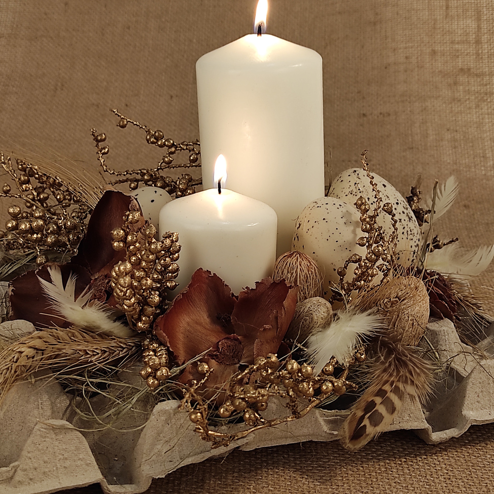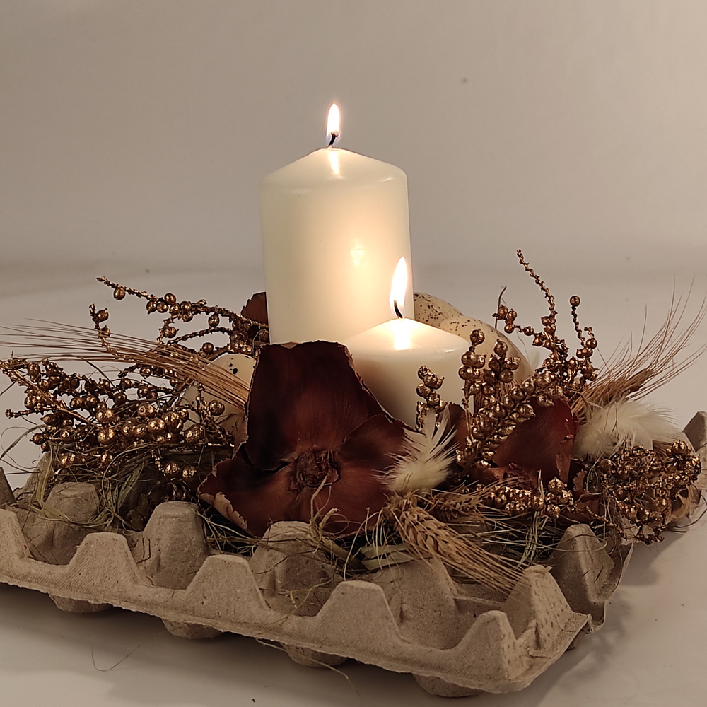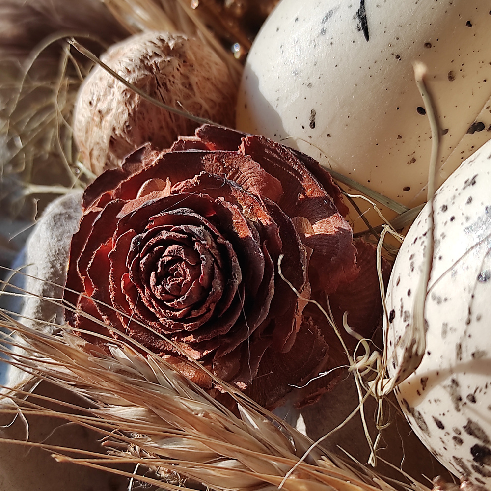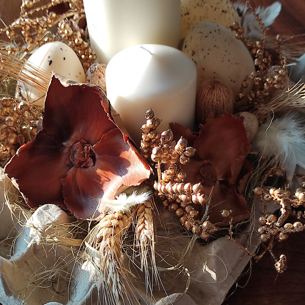 Podaruj swoim bliskim, klientom lub partnerom biznesowym wyjątkową, autorską dekorację wielkanocną, która łączy tradycję, elegancję i ekologiczną harmonię. Ta ręcznie wykonana kompozycja to nie tylko ozdoba na świąteczny stół, ale także symbol odrodzenia, dobrobytu i równowagi.