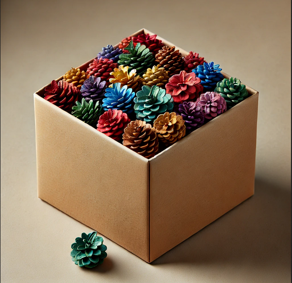 Box z kolorowymi szyszkami to must-have dla każdego, kto ceni rękodzieło i niepowtarzalne dekoracje!