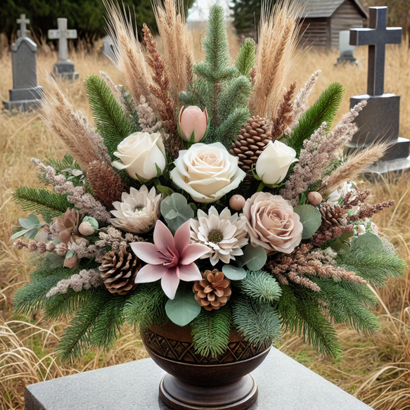 Stroik doskonale sprawdzi się jako ozdoba nagrobna na Wszystkich Świętych, Zaduszki czy inne okazje pamięciowe. Dzięki wykorzystaniu trwałych materiałów kompozycja pięknie prezentuje się przez wiele tygodni, niezależnie od warunków pogodowych. To wyjątkowa i elegancka dekoracja na grób, która w godny sposób wyraża pamięć i szacunek dla bliskich.