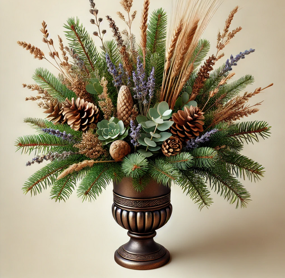 Elegancki i trwały stroik nagrobny o długości 60 cm, wykonany z gęstego, zielonego igliwia. Naturalne dodatki – szyszki, suszone trawy, kłosy zbóż i gałązki lawendy – nadają mu wyjątkowego, jesiennego charakteru. Kompozycja łączy tradycyjny styl z nutą nowoczesnej lekkości, sprawiając, że stroik pięknie prezentuje się na nagrobku przez długi czas. Dzięki starannemu wykonaniu i wykorzystaniu naturalnych materiałów stroik jest odporny na jesienne warunki pogodowe, a jednocześnie podkreśla szacunek i pamięć o bliskich.
