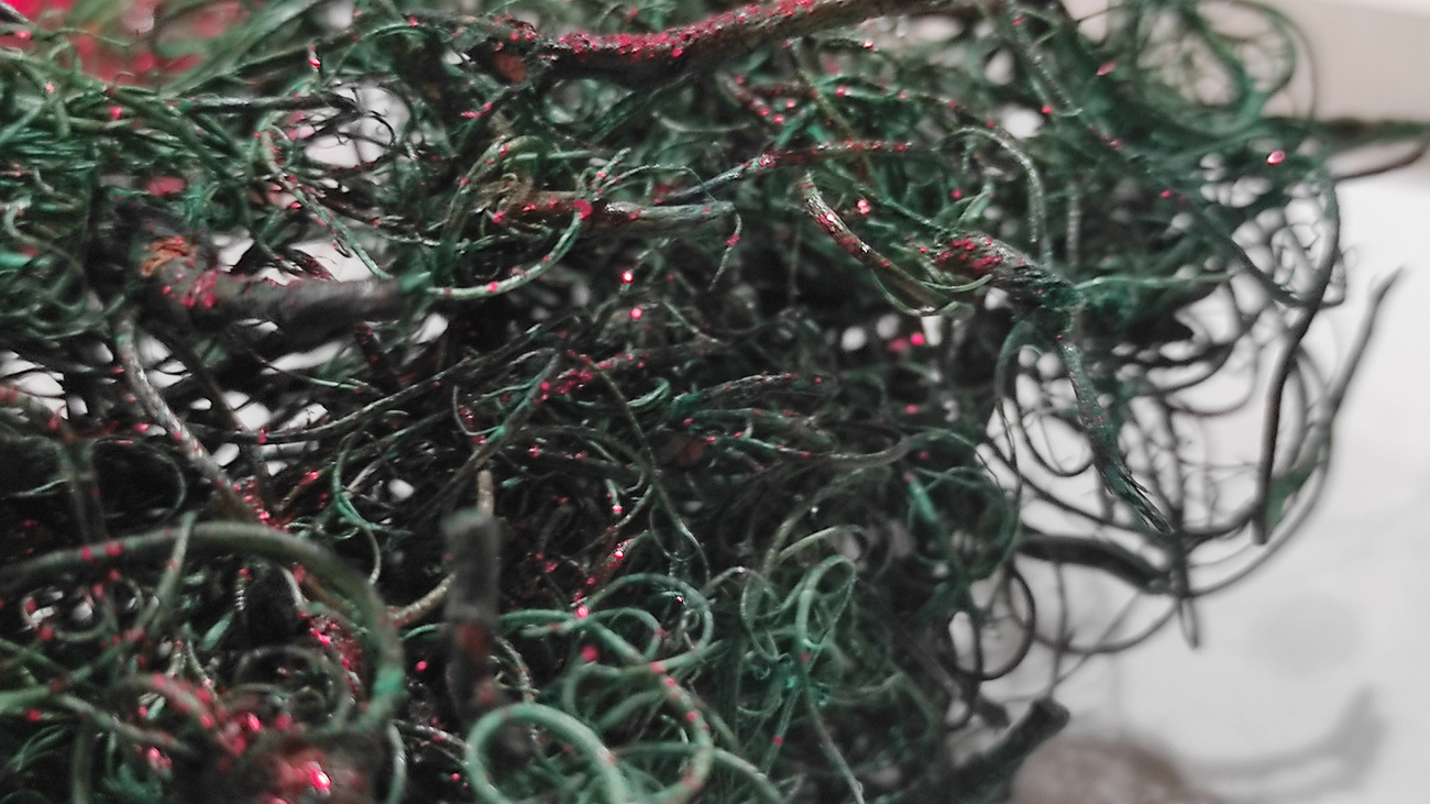 Suszone rośliny – Mech kręcony zielony z czerwonym brokatem (Bryoria fremontii)  Wymiary: 70 / 110 / 160 mm