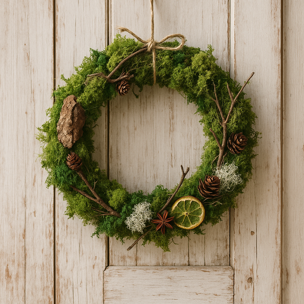 Naturalny Wianek z Mchu z Szyszkami i Suszonymi Dodatkami – Kolekcja GrandDeco