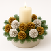 Stroik stołowy – ułóż szyszki w naczyniu z białą świecą i drobnymi bombkami,